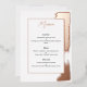 Foiled menu overview with a modern foiled design. Personalise this card to suit your event.