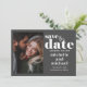 Announce your big day with this wedding save-the-date card featuring your personal photo and a clean, modern typography layout. Designed in grey and white, it captures a simple, minimalist look while remaining timeless and classic. Perfect for showcasing the bride and groom, this design blends elegance with functionality. It is a stylish choice for couples who love a minimal aesthetic and want their save-the-date to feel both chic and memorable.