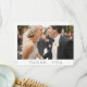 A simply designed wedding thank you card features your wedding photo with THANK YOU in a simple black font on the front.