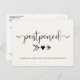 Let your guests know that there's been a change of plans and your wedding date has been postponed with this chic light cream wedding postponement announcement. "postponed" is written in stylish modern typography and underneath, pointing to a future of love, is an arrow and heart. You can personalise your names and postponement announcement on the front of the card and provide more details on the reverse side such a new date or whether a new date will be forthcoming when you have one.