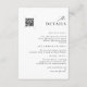 The card showcases "the details" beautifully scripted in calligraphy, with a prominent QR code at the top for easy online access to your wedding details. This tech-forward approach ensures a seamless experience for your guests. The card includes essential information about your wedding, such as venue details, schedule, and more.