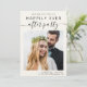Modern and chic light cream elopement and small wedding announcement and reception save the date featuring your wedding day photo, "Save The Date For Our Happily Ever After Party" in a mix of simple typography and trendy script with swashes and your first names and reception/party date and location. On the reverse side, personalise your wedding announcement and reception information in more detail.