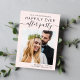 Modern and chic light pink elopement or small wedding announcement with a reception save the date featuring your wedding day photo and "Save The Date For Our Happily Ever After Party" in a mix of simple typography and trendy script with swashes. Under your photo, add your first names and reception/party date and location; on the reverse, personalise your wedding announcement and reception information in more detail.