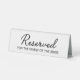 Modern black and white, custom wedding "Reserved for the family of the bride" table tent sign. Contact me for help with customisation or to request matching or coordinating Zazzle products