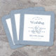 Our trendy save-the-date wedding coaster design features a unique modern abstract leaf pattern in white on a trendy dusty blue background. Stylish script & lettering in blue is arranged on a white background. The names of the couple is displayed over a large ampersand in a shade of lighter dusty blue. Be sure to see the collection link on this page to view all of the matching items! Please direct questions or custom requests to invitationsuites@gmail.com.