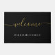 Modern Welcome Black Gold Script Family Name Doormat
