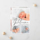 A simple and elegant modern birth announcement. The front features a 3 photo collage of your newborn overlayed with "Welcome" in a stylish script and your baby's name, birth date and birth stats in classic serif typography. On the back, add 3 additional photos and your personalised message.