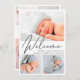 Modern Welcome Script Photo Collage Birth Announcement