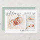 Announce your little one's arrival with these modern gender neutral birth announcements featuring three photos in a grid layout. "Welcoming" appears across the top in fresh, casual handwritten script lettering, with your baby's name and birth stats alongside. Your family signature at the bottom completes the design. Depending on name length, adjust the family signature and the "with love" greeting using the Design Tool.