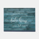 Modern, chic brush script reading WELCOME TO OUR LAKE HOUSE in a trendy typography driven design. Great custom lake house decor for your home away from home. Both romantic and stylish, our turquoise printed driftwood door mat features a sweet canoe illustration between your location and the year established.