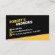 A vibrant yellow accent that highlights the business name and contact information.