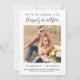 Modern engagement announcement featuring your photo and "We're Beginning Our Happily Ever After" in a mix of minimal typography and a stylish script. Personalise with your first names and a custom engagement announcement message, such as whether to stay tuned for a wedding date.
