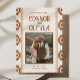 A modern western wedding Save the Date featuring warm neutral tones and bold southwest-inspired patterns. Perfect for ranch, desert, or outdoor weddings with a semi-formal western feel. Available as professionally printed invitations or a convenient digital file for easy sharing.