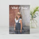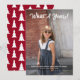Modern holiday card features "What A Year!" in a white handwritten script font over the top of your photo. Replace the sample photograph with your own. Personalise it by adding your greeting, family name, and first names in the sidebar. You can also add the year if you like. Your custom text will appear near the bottom in white type on a dark semi-transparent band that lets the photo show through.