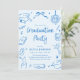 Modern Whimsical Hand Drawn Blue Graduation Party Invitation