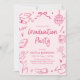 Modern Whimsical Hand Drawn Pink Graduation Party Invitation