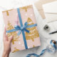 modern whimsical holidays trees gold pink pattern wrapping paper