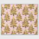 modern whimsical holidays trees gold pink pattern wrapping paper