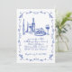Modern Whimsical Pizza Wine Doodle Birthday Party Invitation