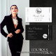 Make a lasting impression with this elegant and quality business card template featuring luminous shimmery diamonds graphics and pretty faux silver stripes on a plain white and a plain black background.