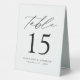 Trendy, minimalist wedding table number tent signs featuring black modern lettering with "Table" in modern calligraphy script. The design features a white background or a colour of your choice. The design repeats on the back. To order the table number tent signs: personalise with your names, wedding date, and table number. Add each number to your cart individually and check out when you're finished.