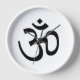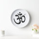 Yoga, Om Aum Icon, Hinduism Symbol, black and white minimalist modern Round Clock.