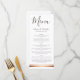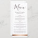 A modern white wedding menu featuring two copper stripe embellishments at the bottom of the card. This menu features the bride and groom's names and their wedding date along with ample spacing for to include your menu selections.