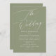 Simple White and Sage Green Modern Wedding Invitation for a modern wedding formal or informal. With white impressive modern calligraphy.