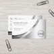Very elegant white and silver coloured business card design with a noble shimmery silver decor.