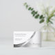 Very elegant white and silver coloured business card design with a noble shimmery silver decor.