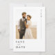 Capture the essence of your upcoming celebration with this modern white destination photo wedding save the date. Featuring elegant calligraphy and a photo of your choice, this card is perfect for beach, tropical, or nautical themed weddings. Announce your special day with style with a design that's both simple and sophisticated.