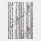 Modern White Birch Trees and Red Cardinal Birds Tea Towel