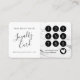 Discover the ultimate customer loyalty business card tailored for modern professionals like lash artists, makeup artists, and nail technicians. This chic design showcases a sophisticated blend of white and black marble backdrop adorned with elegant handwritten script typography. Perfectly blending modernity with elegance, this trendy, stylish, and unique card is designed to impress your clientele.