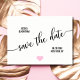 Elegant and modern SAVE THE DATE postcards to send your guests. White script calligraphy. Blush pink rose heart in middle. Online personalised templates for ease of editing. Add your text in front and back of card. Contact designer for special requests.