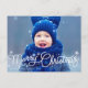 Modern white christmas blue typography postcard