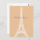 Modern minimalist style white Eiffel Tower silhouette graphic on peach background. Customisable "thinking of you" text