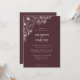 This modern floral wedding invitation features a dramatic burgundy background with elegant white line art florals and stylish serif typography. Perfect for couples looking for a romantic yet contemporary invitation with timeless flair.