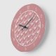 Modern white flower pattern and dusty rose pink border wall clock. The focus of this design is the beautiful gray and white floral pattern and the border with the numbers.