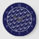 Modern white flower pattern and navy blue border wall clock. The focus of this design is the beautiful grey and white floral pattern and the border with the numbers.