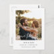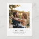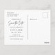 Custom-designed wedding save the date postcard featuring simple white frame design with modern hand script.