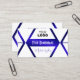 Make a lasting impression with this eye catching and modern business card design featuring chic white geometric graphics with a shimmery blue background.