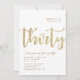 Simple white & gold "Thirty" personalised 30th birthday invitation with classy and modern typography. Customise with name, age, and party details.