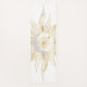 A Unique gold sun and moon universe theme mandala celestial white design, featuring a sun with floral doodles wavy rays’ mandala, a crescent stage moon, a mandala Saturn planet and its ring and stars, faux metallic gold foil hand-drawn doodling art, on a simple white background. A mystic, astrology, universe theme golden mandala.