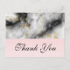 A thank you postcard with an elegant and modern marbled pattern. White, black and smoky grey marble with thin ribbons of faux-gold swirls throughout the pattern.