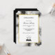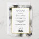Dinner party invitation with an elegant and modern marbled pattern. White, black and smoky grey marble with thin ribbons of faux-gold swirls throughout the pattern. A rectangle frame with a faux-gold-foil border layered over top. Inside the frame is a decorative divider and a silhouette of some wine glasses. Personalise with your event text.