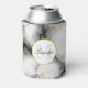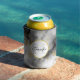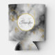 Can cooler with a classy, modern marbled pattern. White, black and smoky grey marble with thin ribbons of faux-gold swirls throughout the pattern.