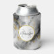 Modern White Grey Marble with Gold Ribbon Monogram Can Cooler