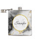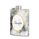 Modern White Grey Marble with Gold Ribbon Monogram Hip Flask