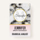 Name badge with a classy, modern marbled pattern. White, black and smoky grey marble with thin ribbons of faux-gold swirls throughout the pattern.