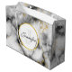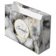 Modern White Grey Marble with Gold Ribbon Monogram Large Gift Bag